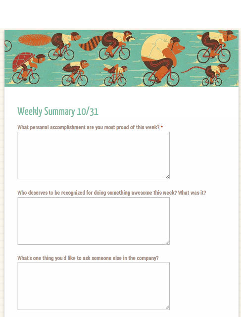 Every Friday at InstaEDU we have a company wide meeting (there are 25 of us). Prior to this meeting we fill out this simple form: